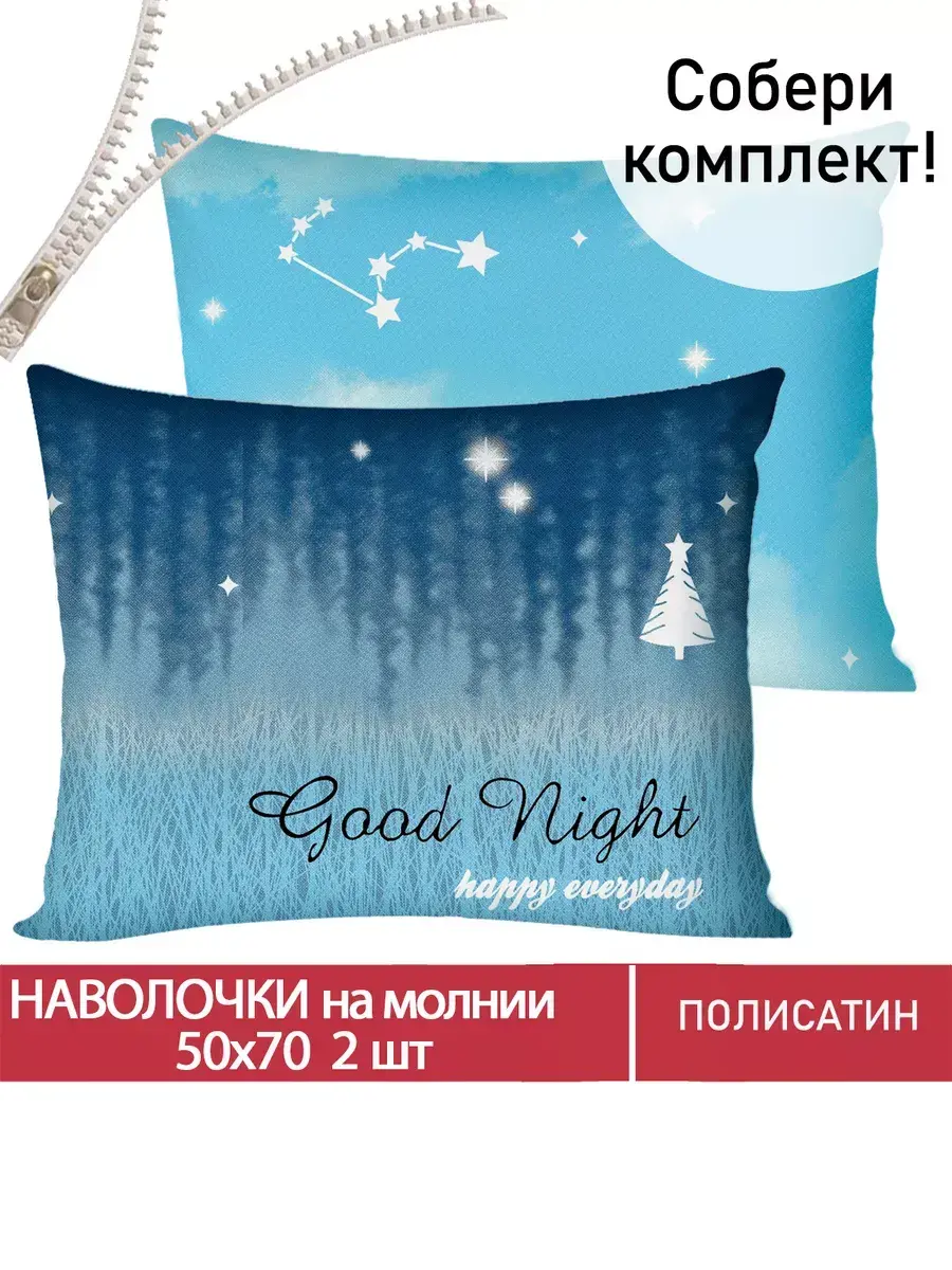 Наволочка комплект 2шт Полисатин Мечта "Безмятежность" 50x70 см на молнии