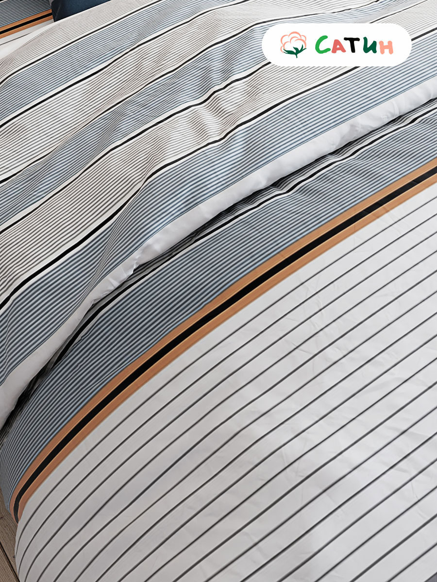 Две красивые наволочки в бело-серую с черным разноразмерную полоску, на молнии из сатина - 100% хлопковой ткани. Ткань легкая и мягкая, с нежным сатиновым блеском, не скатывается и не электризуется, гигиеничная и гипоаллергенная, сохраняет свой первоначальный вид и цвет при температуре до 40 градусов. Изготовлено в России. Вы можете собрать из нашей продукции комплект постельного белья на свой вкус по индивидуальным размерам, выбрав интересующую расцветку ткани, размер пододеяльника, наволочек, тип и размер простыни.