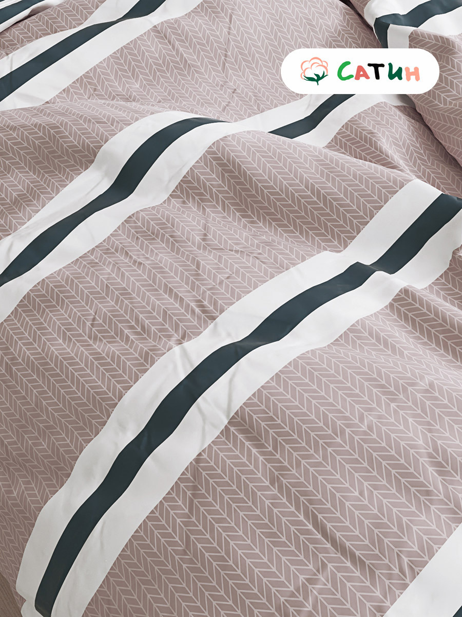 Две красивые наволочки бежевого цвета с бело-черными полосами, на молнии из сатина - 100% хлопковой ткани. Ткань легкая и мягкая, с нежным сатиновым блеском, не скатывается и не электризуется, гигиеничная и гипоаллергенная, сохраняет свой первоначальный вид и цвет при температуре до 40 градусов. Изготовлено в России. .