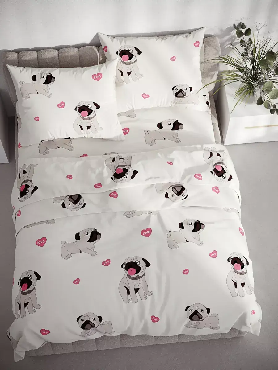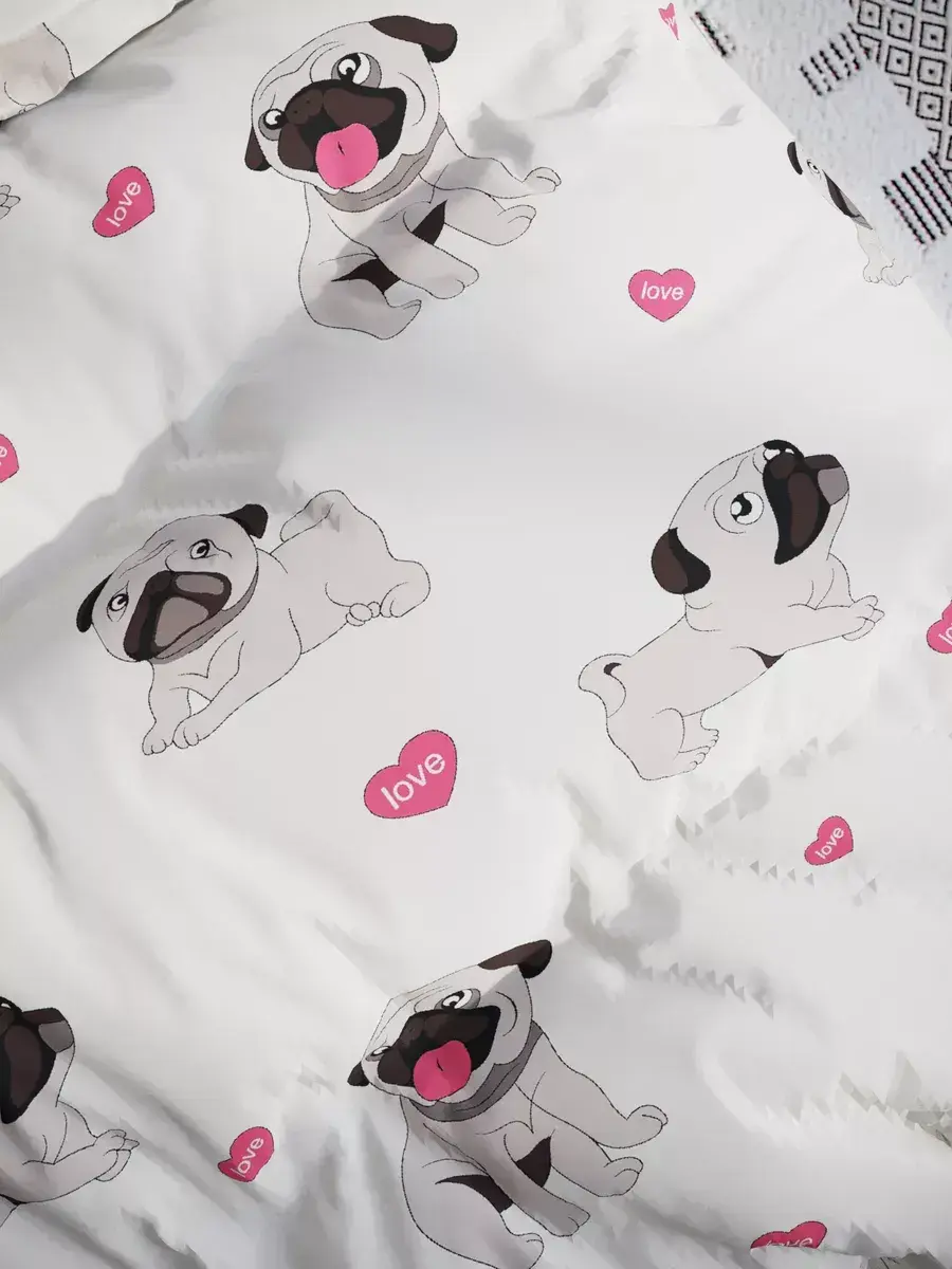 Наволочка комплект 2шт Полисатин Мечта "Мопсики" 40x60 см на молнии