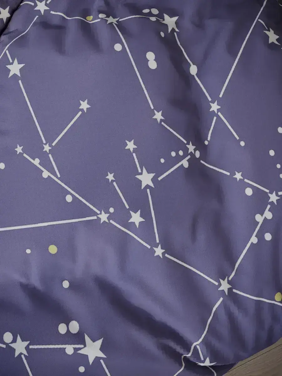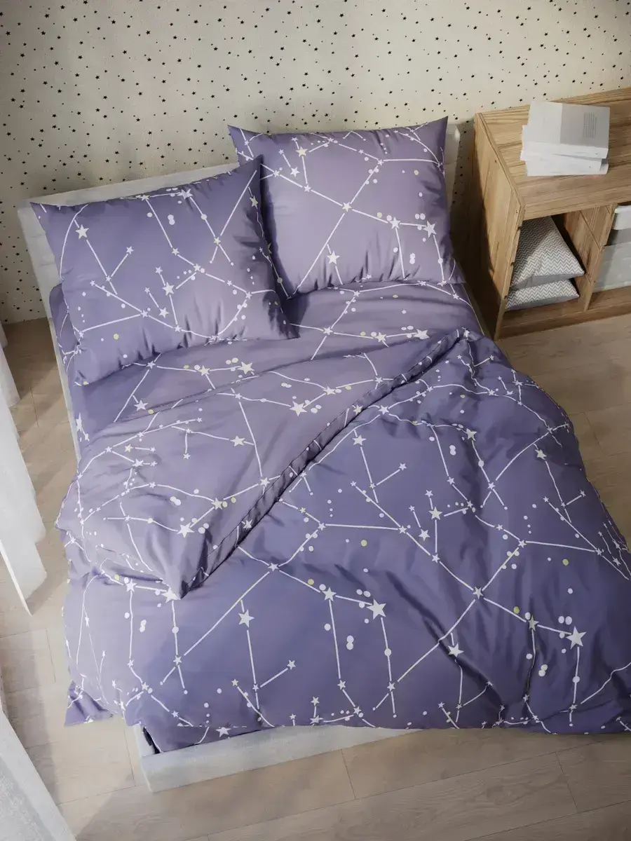 Две красивые наволочки фиолетового цвета со звездами, на молнии из сатина - 100% хлопковой ткани. Плотность ткани - 110 гр. Ткань легкая и мягкая, с нежным сатиновым блеском, не скатывается и не электризуется, гигиеничная и гипоаллергенная, сохраняет свой первоначальный вид и цвет при выборе температуры воды для стирки до 40 градусов. Изготовлено в России. Вы можете собрать из нашей продукции комплект постельного белья на свой вкус по индивидуальным размерам, выбрав интересующую расцветку ткани, размер пододеяльника, наволочек, тип и размер простыни.