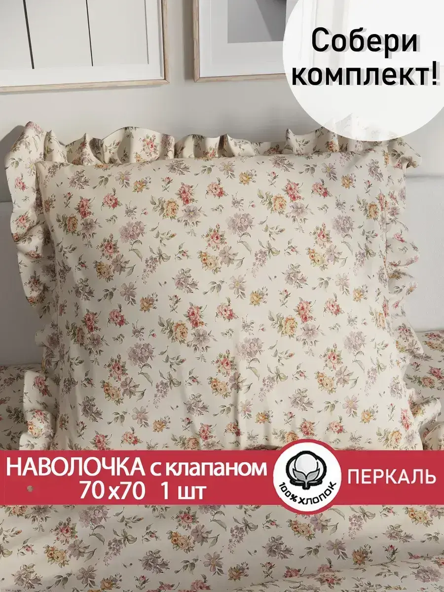 Наволочка с оборкой из нежного перкаля высочайшего качества - 100% хлопок - отличный стильный аксессуар для вашего дома. Вы можете собрать полный спальный комплект по вашим размерам из этой ткани, дополнив его наволочками с оборками. Эти наволочки с оборками отлично поддержат стиль прованс, английская классика, винтаж, ретро. Также наволочка может быть использована как декоративная подушка в спальне или гостиной, она подходит на классические спальные подушки 70х70 см. Наволочка с оборками будет прекрасно смотреться и в детской комнате, и точно станет любимой подушкой вашего ребенка! Воздушность этих подушек добавит романтики и атмосферы вашему интерьеру. Плотность перкаля - 110 грамм на кв м, ткань прочная, легкая и мягкая, гигиеничная и гипоаллергенная, хорошо держит форму. Изделия из перкаля сохраняют свой первоначальный вид и цвет вплоть до 1000 стирок при температуре до 40С. Сделано в России. Используем Ивановский текстиль. Если Вам приходит комплект не в товарном виде, c нарушенной упаковкой или без нее, то такой товар изначально не нужно выкупать. Не уходя из ПВЗ, большая просьба, сразу оформлять такие комплекты как возврат брака. Заранее благодарим Вас за выбор нашего постельного белья!