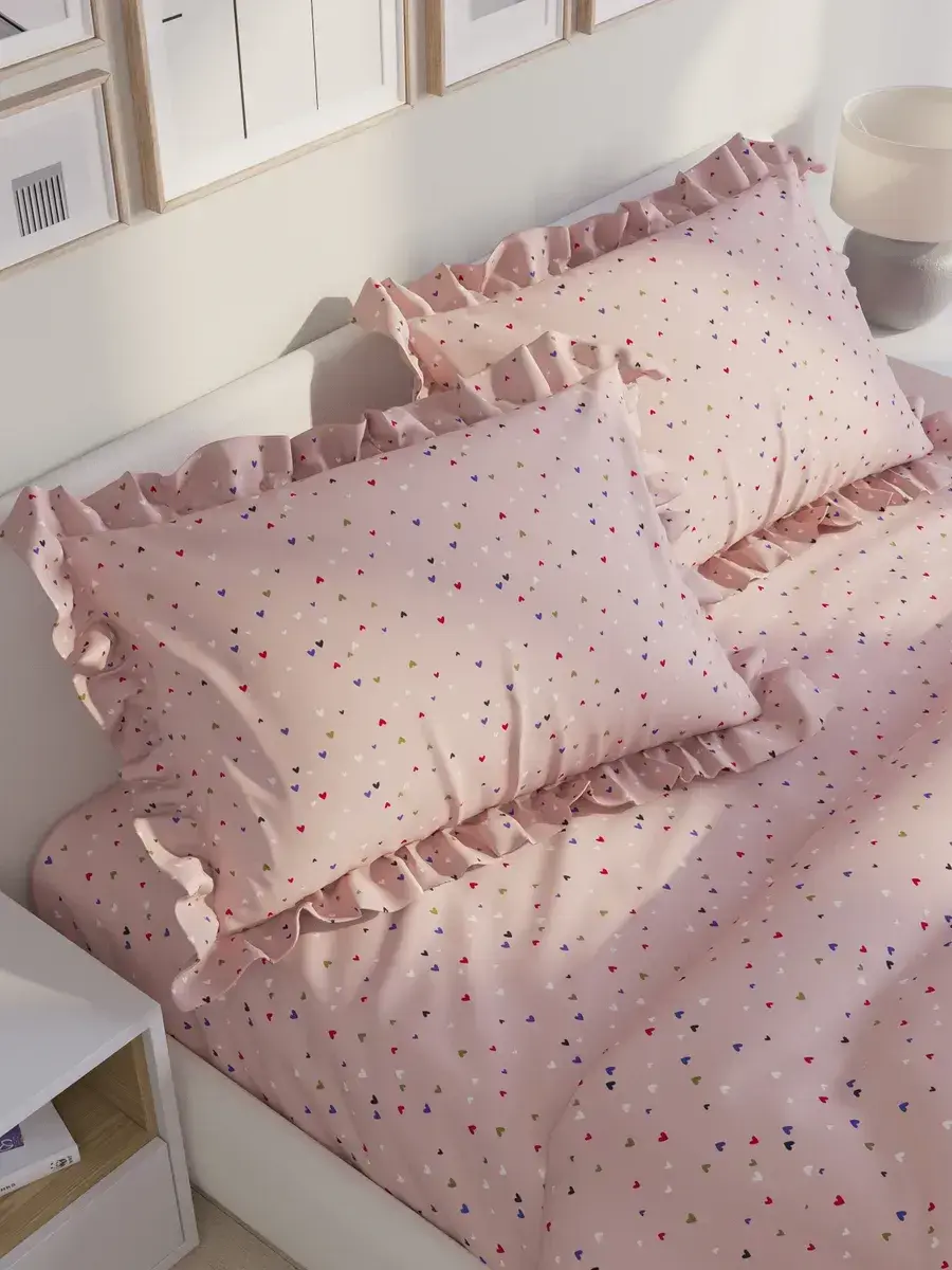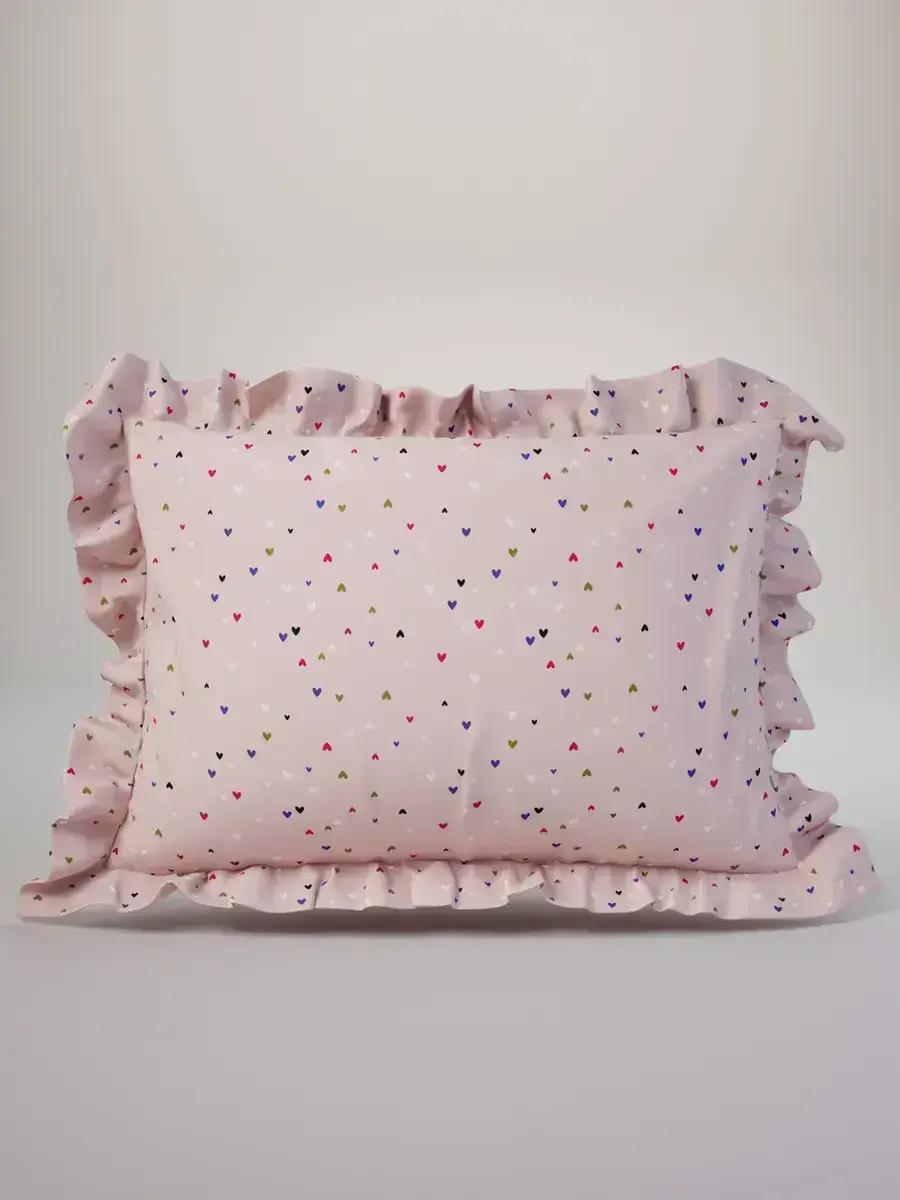 Декоративная наволочка с рюшами, оборками "Сердечки" 50х70 см, 1 шт, без молнии