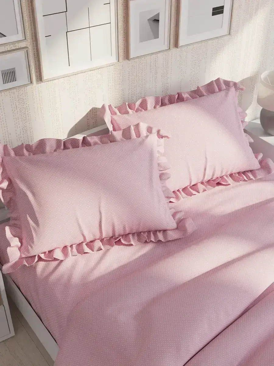 Наволочка с оборкой из нежного перкаля высочайшего качества - 100% хлопок - отличный стильный аксессуар для вашего дома. Вы можете собрать полный спальный комплект по вашим размерам из этой ткани, дополнив его наволочками с оборками. Эти наволочки с оборками отлично поддержат стиль прованс, английская классика, винтаж, ретро. Также наволочка может быть использована как декоративная подушка в спальне или гостиной, она подходит на классические спальные подушки 50х70 см. Наволочка с оборками будет прекрасно смотреться и в детской комнате, и точно станет любимой подушкой вашего ребенка! Воздушность этих подушек добавит романтики и атмосферы вашему интерьеру. Плотность перкаля - 110 грамм на кв м, ткань прочная, легкая и мягкая, гигиеничная и гипоаллергенная, хорошо держит форму. Изделия из перкаля сохраняют свой первоначальный вид и цвет вплоть до 1000 стирок при температуре до 40С. Сделано в России. Используем Ивановский текстиль. Если Вам приходит комплект не в товарном виде, c нарушенной упаковкой или без нее, то такой товар изначально не нужно выкупать. Не уходя из ПВЗ, большая просьба, сразу оформлять такие комплекты как возврат брака. Заранее благодарим Вас за выбор нашего постельного белья!