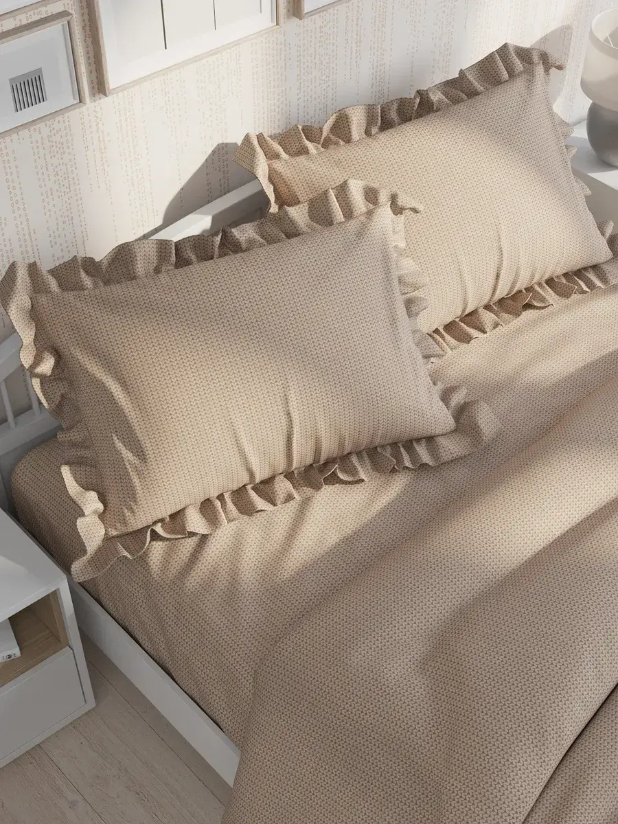 Наволочка с оборкой из нежного перкаля высочайшего качества - 100% хлопок - отличный стильный аксессуар для вашего дома. Вы можете собрать полный спальный комплект по вашим размерам из этой ткани, дополнив его наволочками с оборками. Эти наволочки с оборками отлично поддержат стиль прованс, английская классика, винтаж, ретро. Также наволочка может быть использована как декоративная подушка в спальне или гостиной, она подходит на классические спальные подушки 50х70 см. Наволочка с оборками будет прекрасно смотреться и в детской комнате, и точно станет любимой подушкой вашего ребенка! Воздушность этих подушек добавит романтики и атмосферы вашему интерьеру. Плотность перкаля - 110 грамм на кв м, ткань прочная, легкая и мягкая, гигиеничная и гипоаллергенная, хорошо держит форму. Изделия из перкаля сохраняют свой первоначальный вид и цвет вплоть до 1000 стирок при температуре до 40С. Сделано в России. Используем Ивановский текстиль. Если Вам приходит комплект не в товарном виде, c нарушенной упаковкой или без нее, то такой товар изначально не нужно выкупать. Не уходя из ПВЗ, большая просьба, сразу оформлять такие комплекты как возврат брака. Заранее благодарим Вас за выбор нашего постельного белья!
