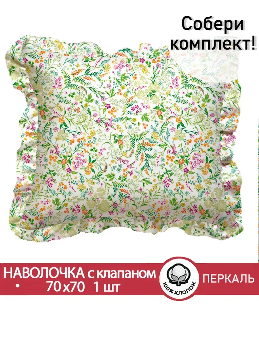 Наволочка с оборкой из нежного перкаля высочайшего качества - 100% хлопок - отличный стильный аксессуар для вашего дома. Вы можете собрать полный спальный комплект по вашим размерам из этой ткани, дополнив его наволочками с оборками. Эти наволочки с оборками отлично поддержат стиль прованс, английская классика, винтаж, ретро. Также наволочка может быть использована как декоративная подушка в спальне или гостиной, она подходит на классические спальные подушки 70х70 см. Наволочка с оборками будет прекрасно смотреться и в детской комнате, и точно станет любимой подушкой вашего ребенка! Воздушность этих подушек добавит романтики и атмосферы вашему интерьеру. Плотность перкаля - 110 грамм на кв м, ткань прочная, легкая и мягкая, гигиеничная и гипоаллергенная, хорошо держит форму. Изделия из перкаля сохраняют свой первоначальный вид и цвет вплоть до 1000 стирок при температуре до 40С. Сделано в России. Используем Ивановский текстиль. Если Вам приходит комплект не в товарном виде, c нарушенной упаковкой или без нее, то такой товар изначально не нужно выкупать. Не уходя из ПВЗ, большая просьба, сразу оформлять такие комплекты как возврат брака. Заранее благодарим Вас за выбор нашего постельного белья!