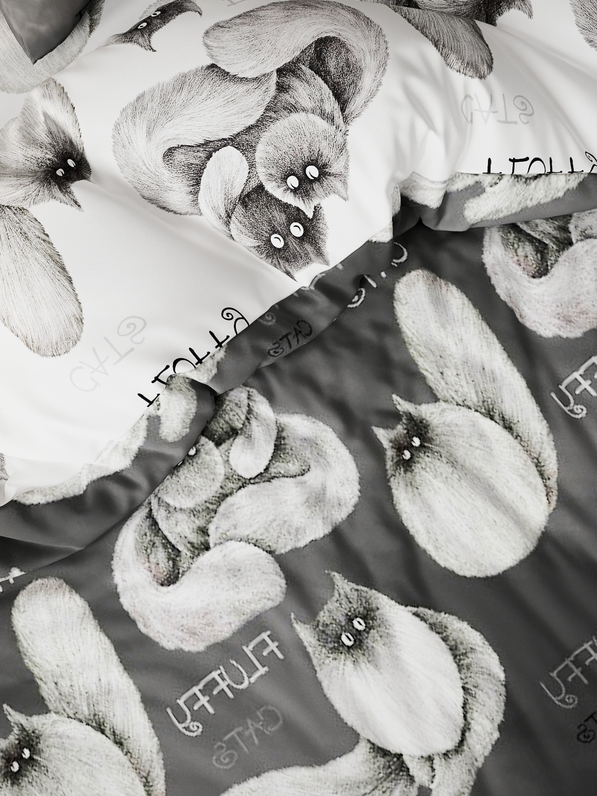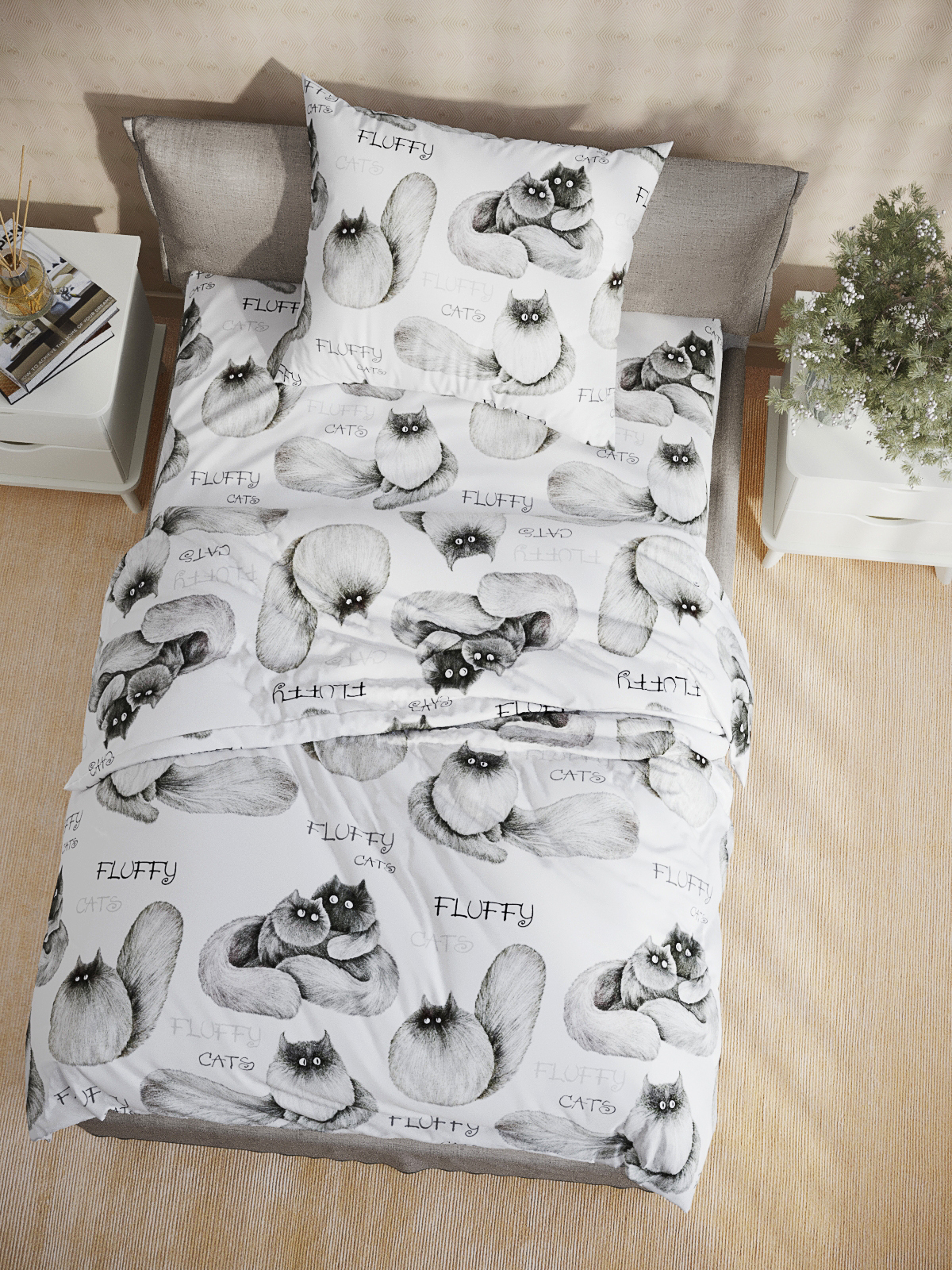 Постельное белье поплин Сказка "Fluffy/Флиппи" 2-спальное Наволочка 50х70 см 2 шт Простынь на резинке 160x200 см Пододеяльник 175x215 см