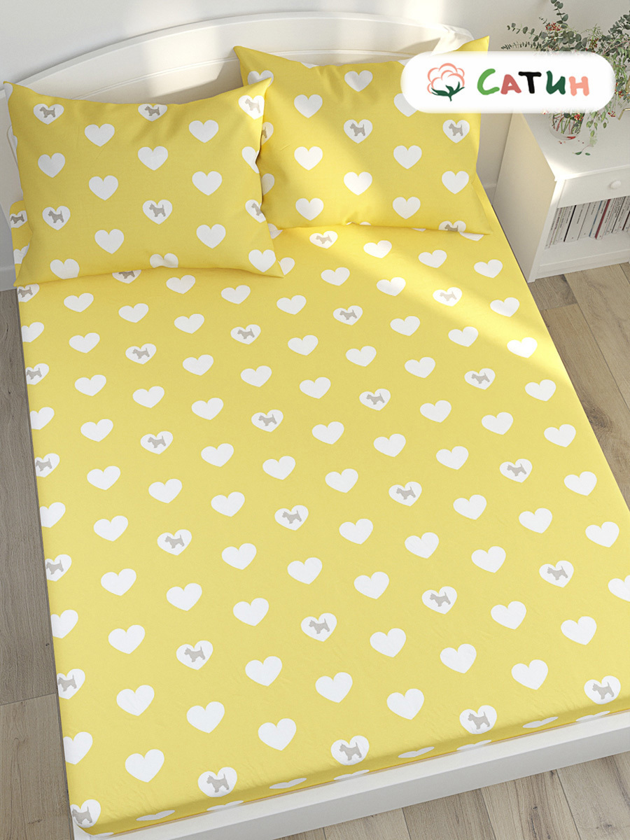 Красивый комплект постельного белья из мягкого сатина. Пододеяльник и наволочки на молнии. Натяжная простыня в комплекте рассчитана на высоту матраса до 26 см. Резинка вшита в торцевые стороны с переходом на продольные стороны по 35 см. Сатин - это 100% хлопковый материал с особым переплетением нитей, которое придает ткани нежный блеск и плотную структуру. Ткань очень износостойкая и прочная, при этом легкая и мягкая, не скатывается и не электризуется, гигиеничная и гипоаллергенная, сохраняет свой первоначальный вид и цвет при стирке с температурой воды до 40 градусов. Произведено в России.