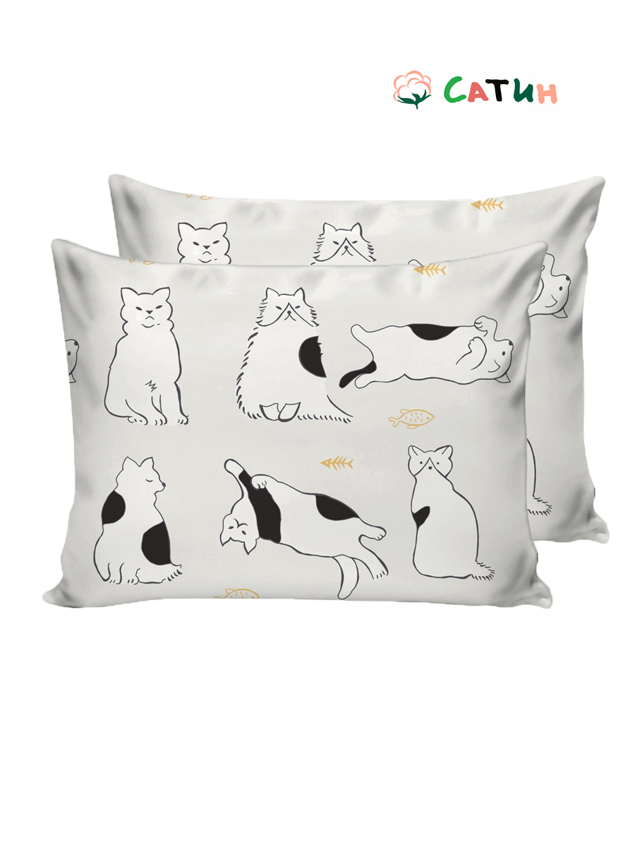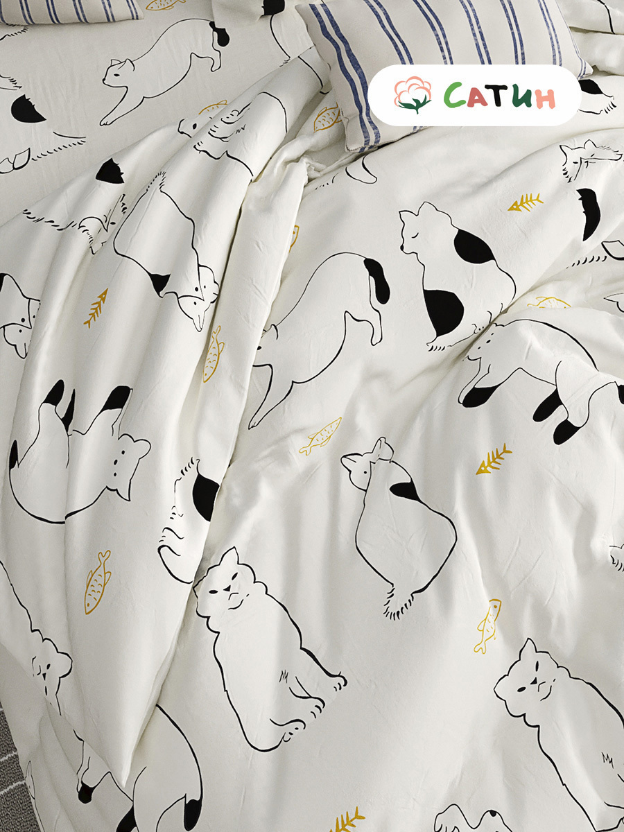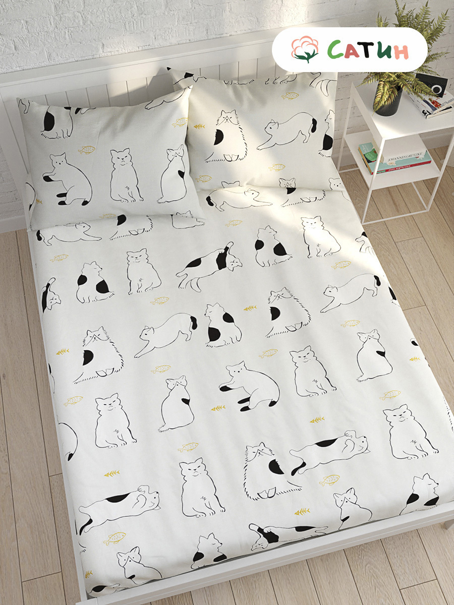 Постельное белье Milky Garden "Кошки" евро Наволочка 50х70 см 2 шт Простынь на резинке 180х200 см Пододеяльник 200х215 см