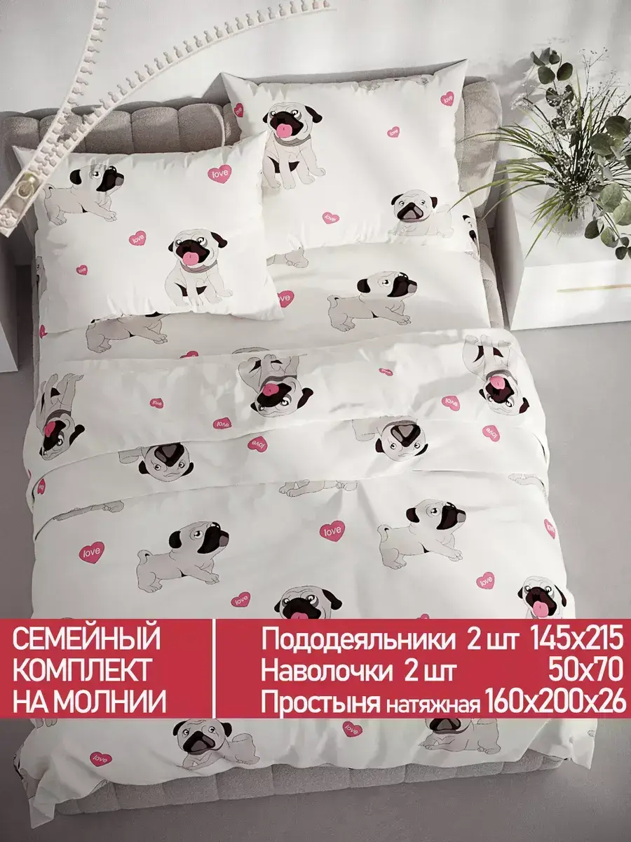 пододеяльник-2шт;простыня на резинке;наволочка - 2 шт.