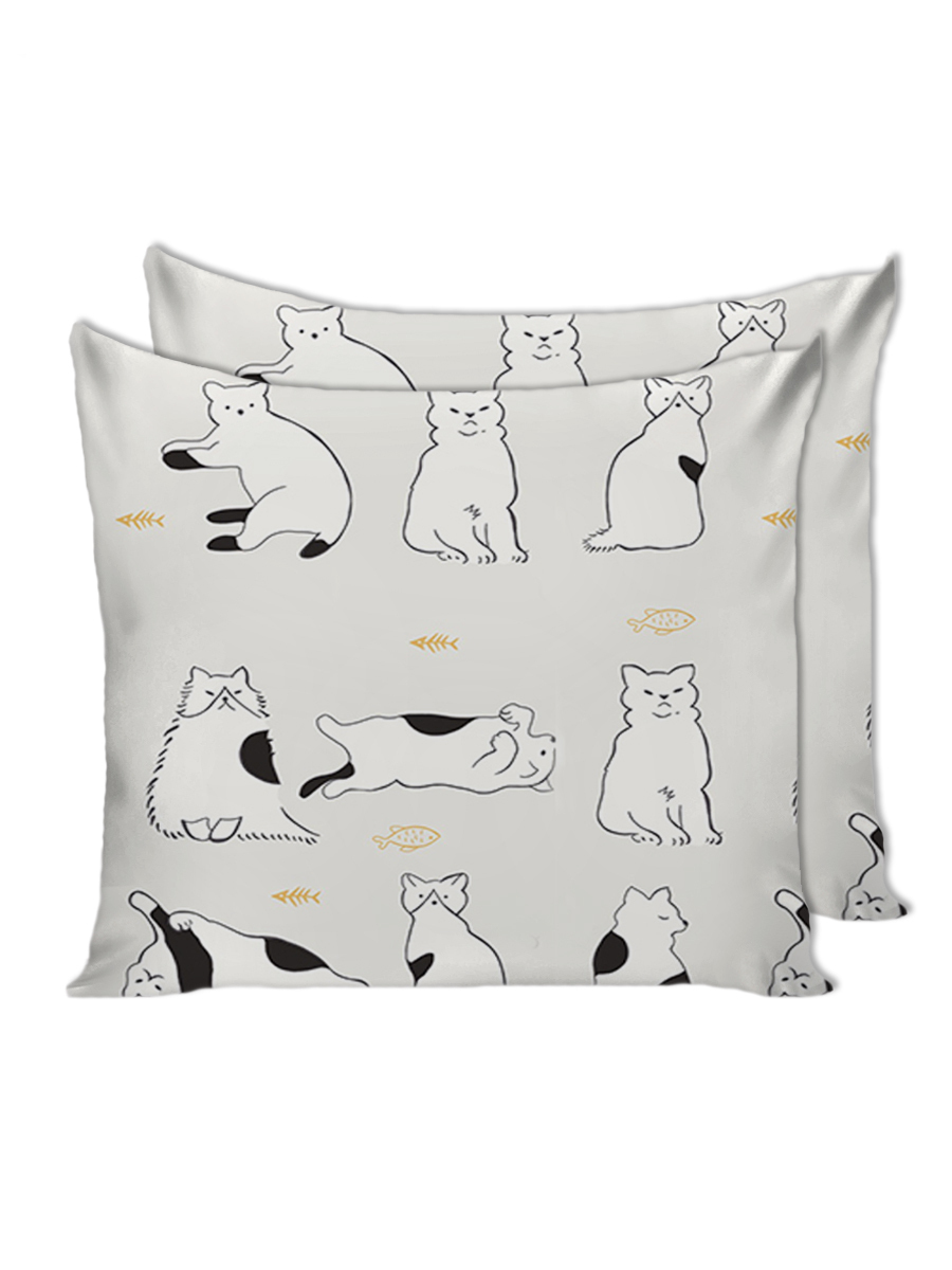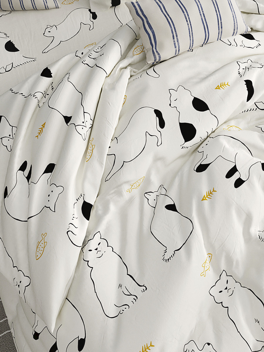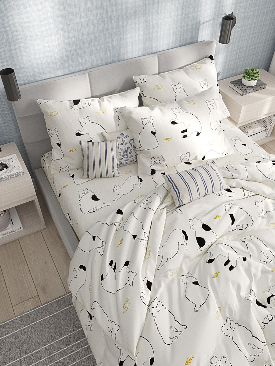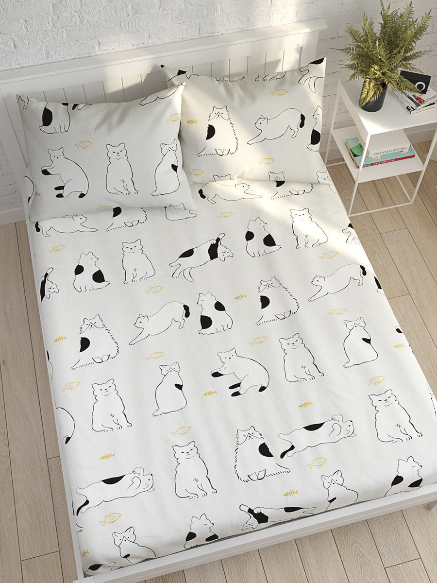 Постельное белье Сказка "Котики на сером" 2-спальный Наволочка 70х70 см 2 шт Простынь 240х215 см Пододеяльник 175х215 см, перкаль