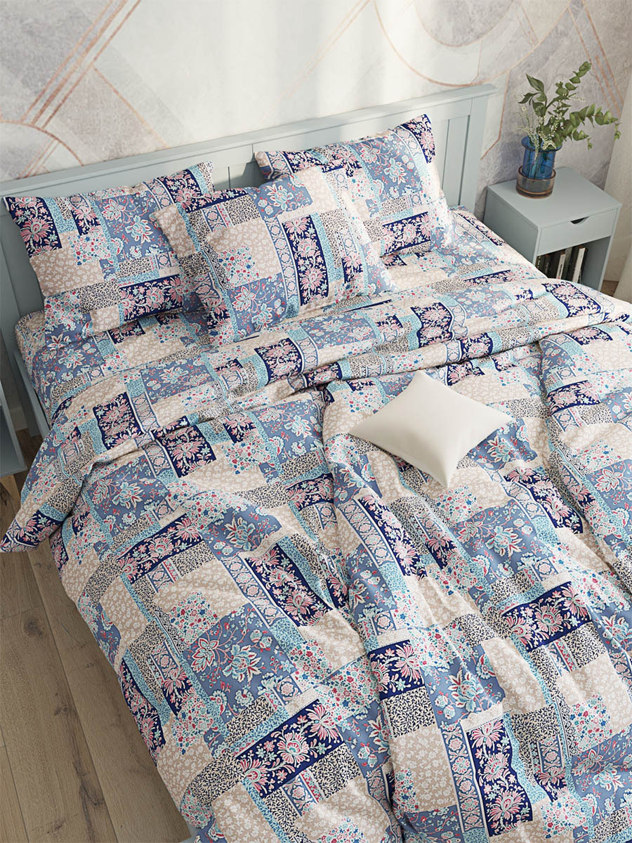 Постельное белье Сказка "Лоскутная мозаика" 2-спальный Наволочка 50х70 см 2 шт Простынь на резинке 160х200 см Пододеяльник 175х215 см, перкаль