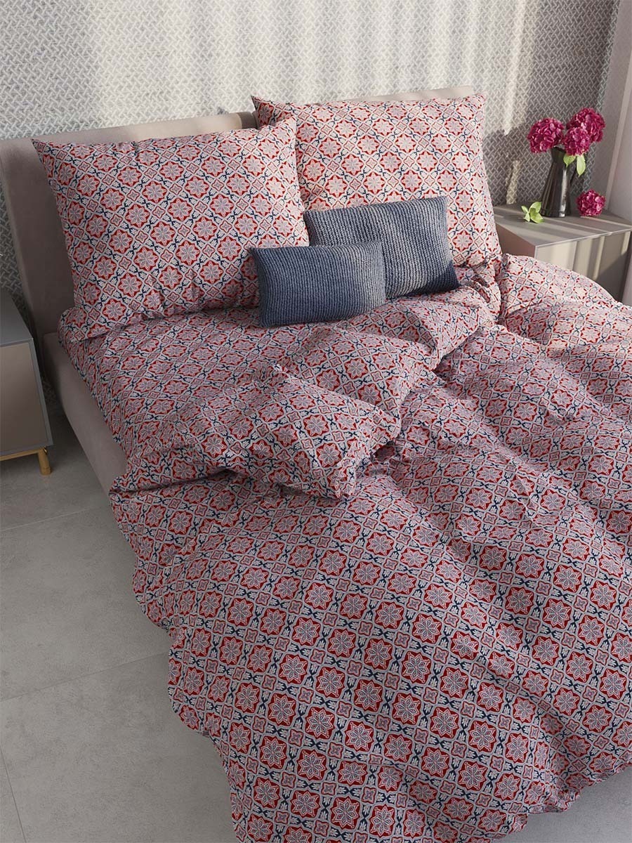 Красивый комплект постельного белья из нежной перкали высочайшего качества - 100% хлопковой ткани. Пододеяльник и наволочки на молнии. Комплект с натяжной простыней, рассчитанной на высоту матраса до 26 см. Резинка вшита в торцевые стороны с переходом на продольные стороны по 35 см. Плотность ткани - 110 гр на квадратный метр, поэтому она очень износостойкая и прочная. Ткань легкая и мягкая, не скатывается и не электризуется, гигиеничная и гипоаллергенная. Белье из перкаля сохраняет свой первоначальный вид и цвет вплоть до 1000 стирок при температуре до 40 градусов. Кроме того, перкаль хорошо хранит тепло. Поэтому спать в такой постели мягко, тепло и уютно. Изготовлено в России. Вы можете собрать из нашей продукции комплект постельного белья на свой вкус по индивидуальным размерам, выбрав интересующую расцветку ткани, размер пододеяльника, наволочек, тип и размер простыни.